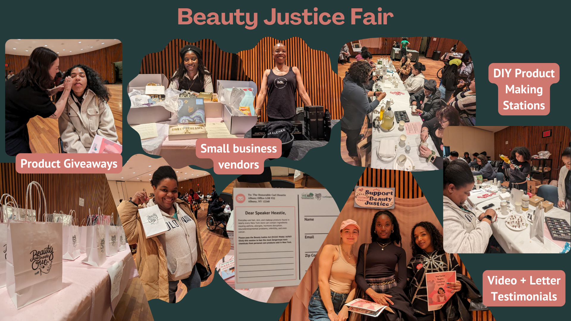 Join WE ACT for Environmental Justice for a fun beauty justice advocacy fair where you can participate in activities such as a DIY beauty product making station, zine/ collage-making, letter writing to advance beauty justice, meeting with your State representative and so much more. This event is to show support for New York State’s Beauty Justice Act (A2054A/S2057A) which would ban many dangerous toxins (e.g. parabens, formaldehyde, PFAS, lead, mercury, etc.) currently found in our everyday body, skin, and hair products.